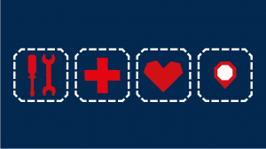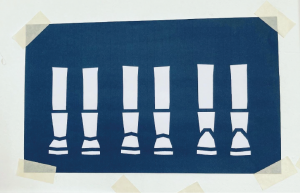 The illustrations were created by placing white, linear surfaces on the corporate colour of the city of Potsdam. The background colour blends into the line.
